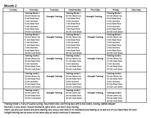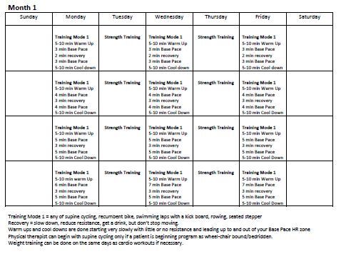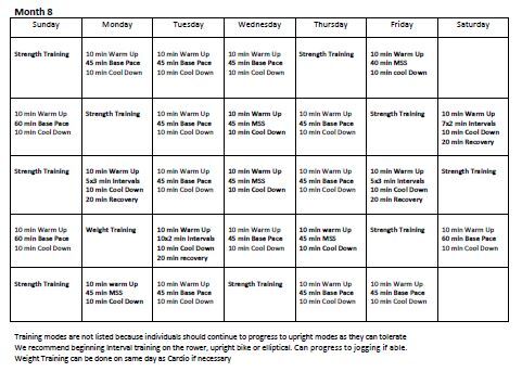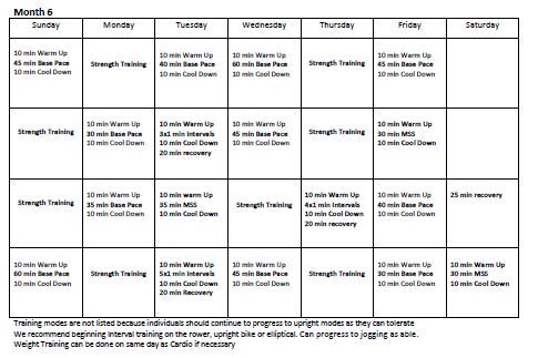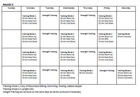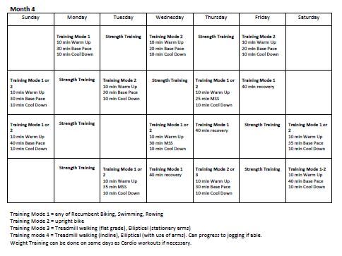 o Swimming laps or kicking laps with a kickboard - Month 4 you can begin to use the upright bike if it is available