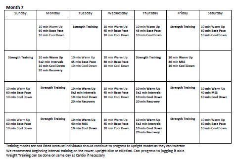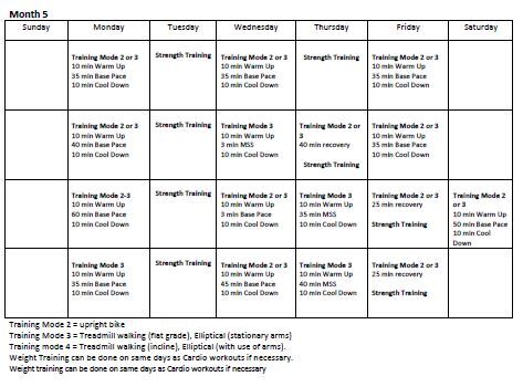 - Month 5 is when you can begin further upright training (elliptical or treadmill)