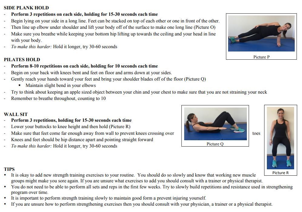• You can add any strength training you want, and try other things like yoga, aerobics classes, returning to competitive sports as you feel able (we do not recommend any exercise in the heat).